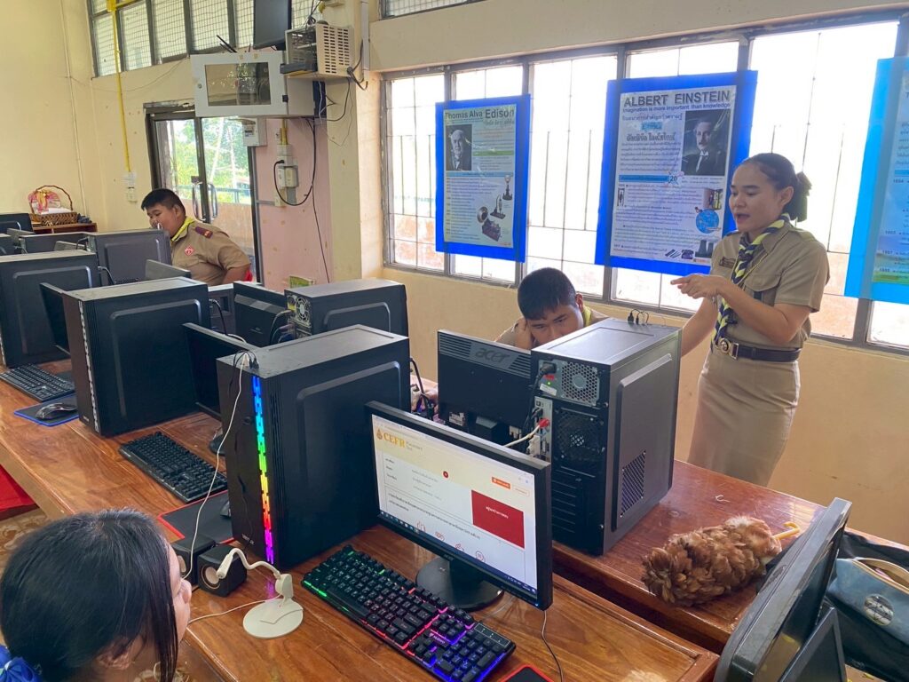 นางจิรภา ธีระวิทย์ ผู้อำนวยการโรงเรียนบ้านเขาตาง้อก มอบหมายให้ นางศิริวิมล เฮงสันเทียะ ครูประจำชั้น นำนักเรียนชั้นมัธยมศึกษาปีที่ 3 เข้าร่วมการสอบวัดระดับความสามารถทางภาษาอังกฤษ (CEFR) ผ่านระบบอินเทอร์เน็ต เพื่อพัฒนาศักยภาพทางภาษาและเตรียมความพร้อมสู่การศึกษาต่อในระดับที่สูงขึ้น บรรยากาศการสอบเป็นไปด้วยความเรียบร้อย นักเรียนตั้งใจทำข้อสอบอย่างเต็มที่ โดยมีคุณครูคอยดูแลและให้กำลังใจตลอดการสอบ