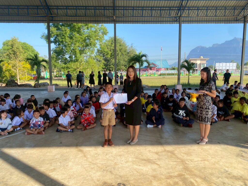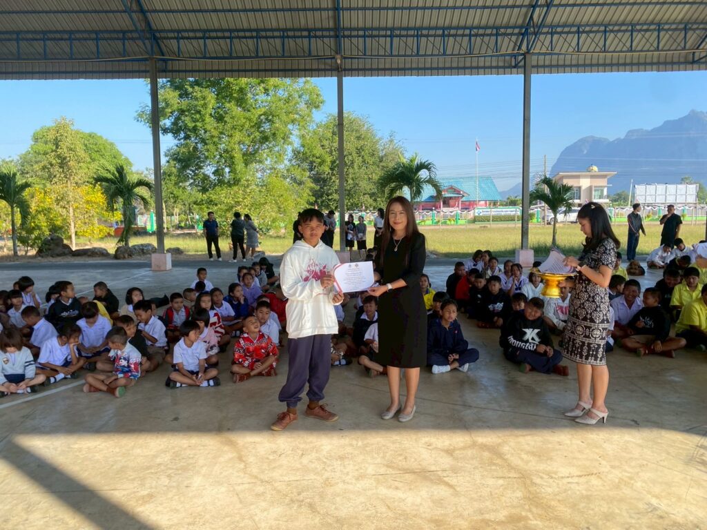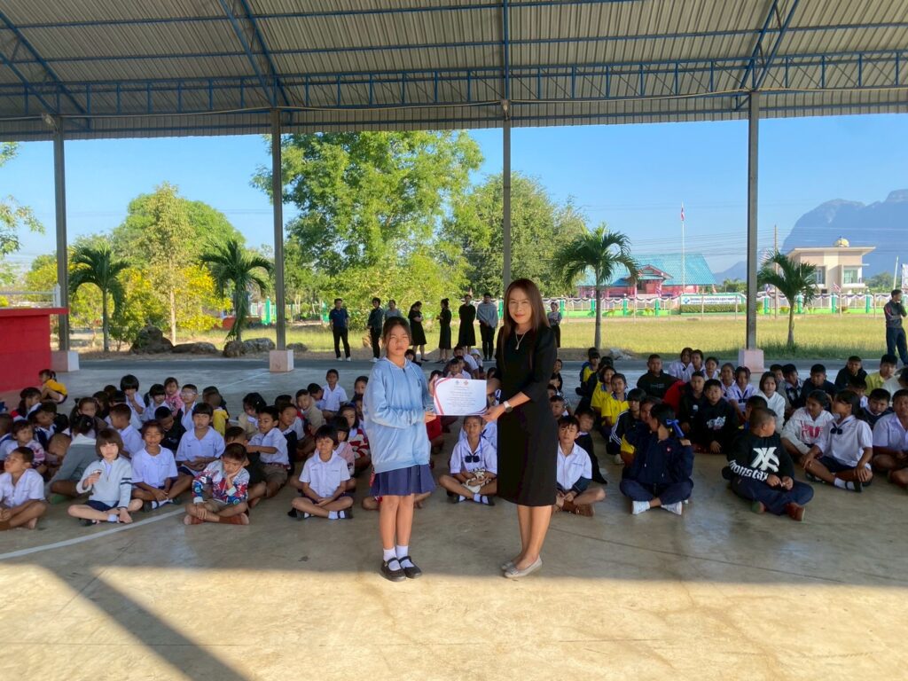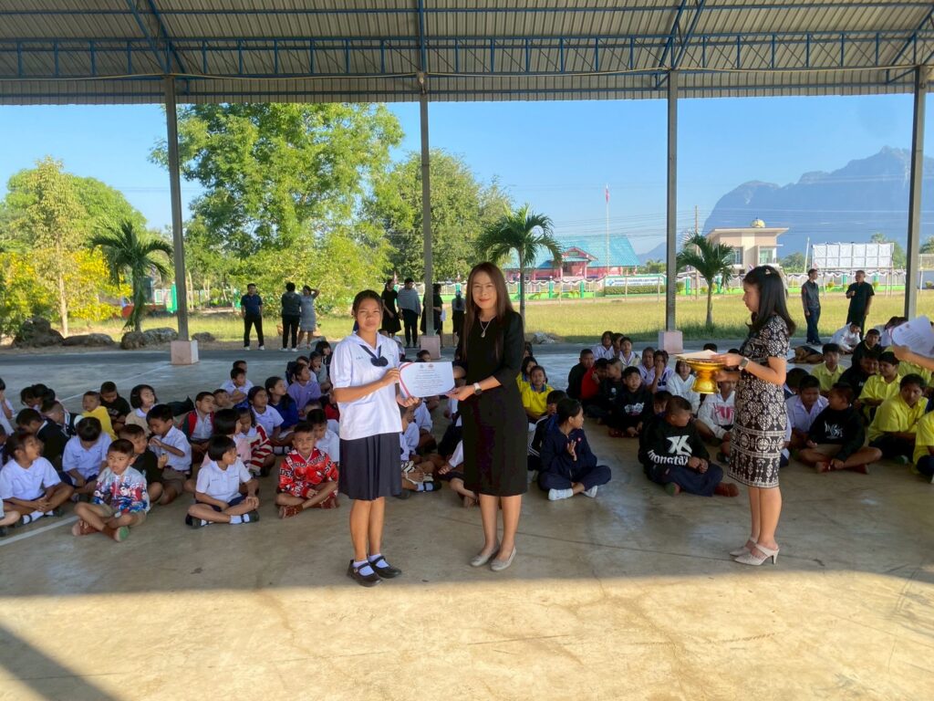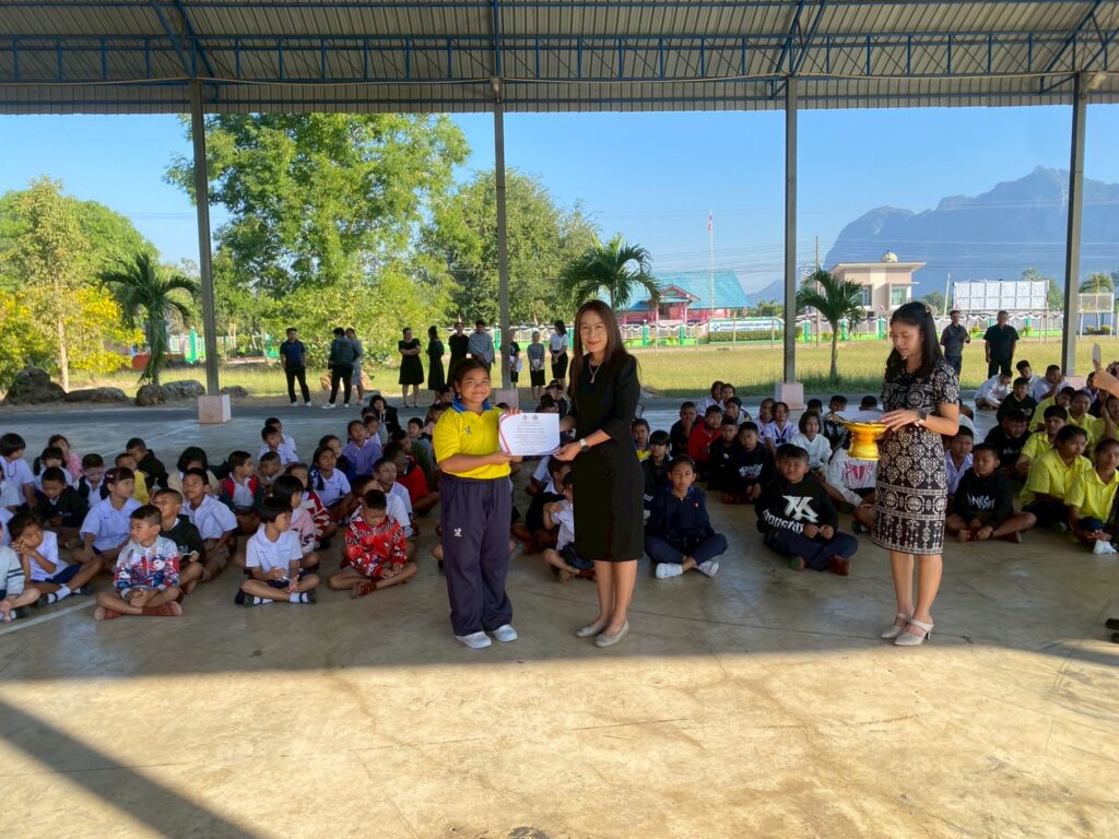 นางจิรภา ธีระวิทย์ ผู้อำนวยการโรงเรียนบ้านเขาตาง้อก มอบเกียรติบัตรให้แก่นักเรียนที่ได้รับรางวัลการประกวด “ห้องเรียนสีขาว ปลอดยาเสพติดและอบายมุข” ประจำเดือนพฤศจิกายน ปีการศึกษา 2568 เพื่อเป็นการสร้างขวัญกำลังใจให้กับนักเรียนและส่งเสริมการสร้างบรรยากาศห้องเรียนที่ดี