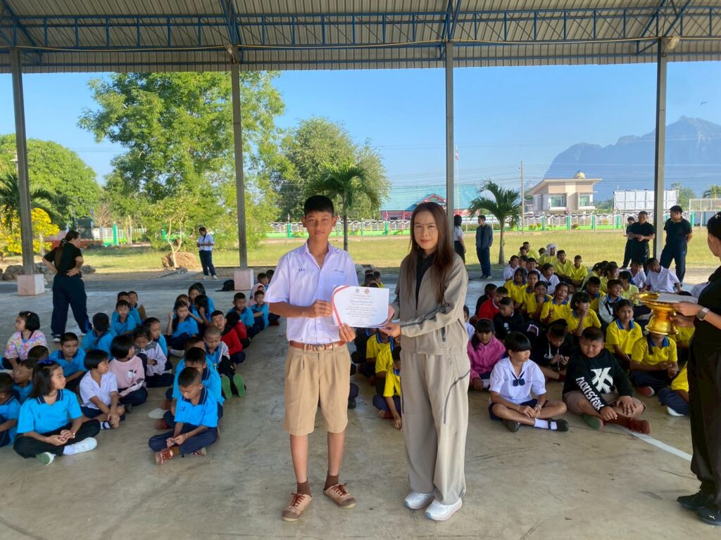 นางจิรภา ธีระวิทย์ ผู้อำนวยการโรงเรียนบ้านเขาตาง้อก มอบเกียรติบัตรให้แก่นักเรียนที่ได้รับรางวัลการประกวด “ห้องเรียนสีขาว ปลอดยาเสพติดและอบายมุข” ประจำเดือนกันยายน ปีการศึกษา 2568 เพื่อเป็นการสร้างขวัญกำลังใจให้กับนักเรียนและส่งเสริมการสร้างบรรยากาศห้องเรียนที่ดี