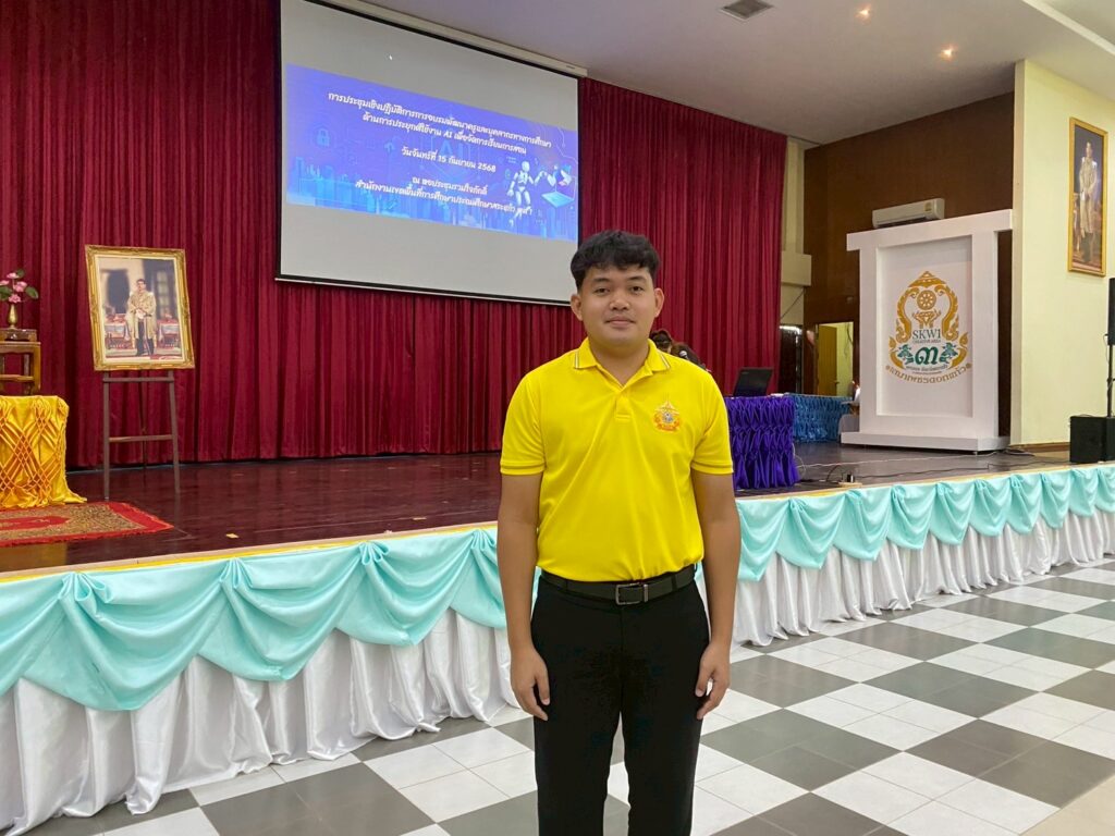 นางจิรภา ธีระวิทย์ ผู้อำนวยการโรงเรียนบ้านเขาตาง้อก มอบหมายให้ นายฐาปนพงศ์ บุญสิงห์ เข้าร่วมอบรม “การพัฒนาครูและบุคลากรทางการศึกษา ด้านการประยุกต์ใช้ AI เพื่อจัดการเรียนการสอน” โดยมี นายอุทัย คำสีหา ผู้อำนวยการสำนักงานเขตพื้นที่การศึกษาประถมศึกษาสระแก้ว เขต 1 เป็นประธานในพิธีเปิด การอบรมครั้งนี้จัดขึ้นเพื่อให้ครูและบุคลากรทางการศึกษามีความรู้ความเข้าใจเกี่ยวกับเทคโนโลยี AI พัฒนาทักษะการใช้เครื่องมือ AI ในการประยุกต์ใช้เพื่อจัดการเรียนการสอนอย่างมีประสิทธิภาพ และสร้างนวัตกรรมการเรียนรู้ที่ทันสมัยและตอบสนองต่อความต้องการของผู้เรียนในยุคดิจิทัล ณ หอประชุมรวมใจภักดิ์ สำนักงานเขตพื้นที่การศึกษาประถมศึกษาสระแก้ว เขต 1