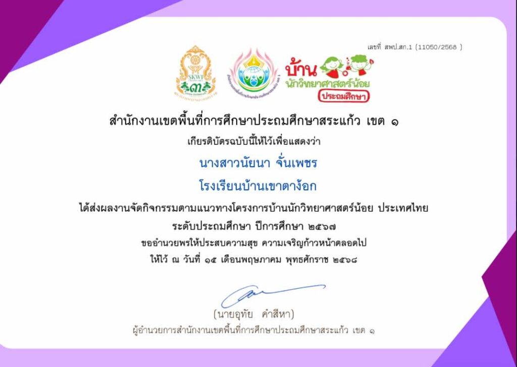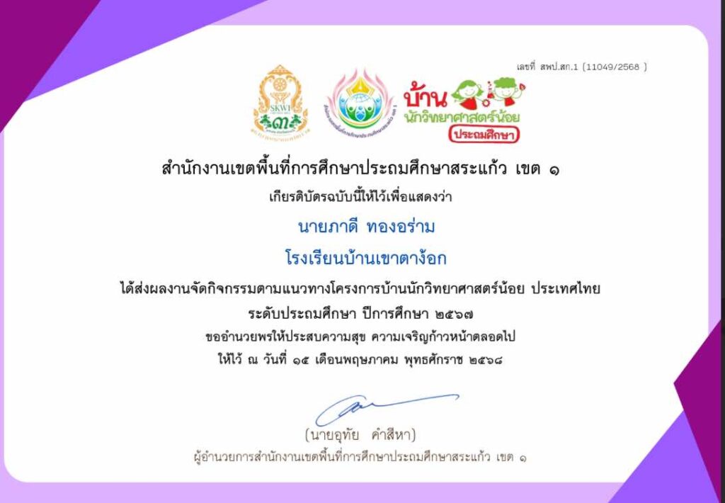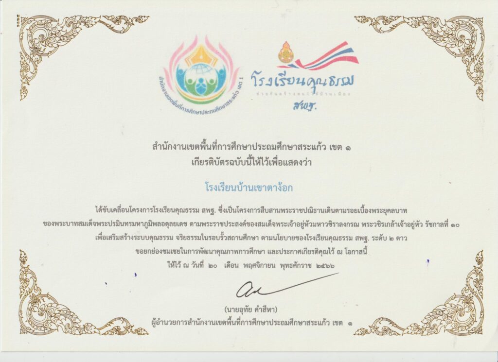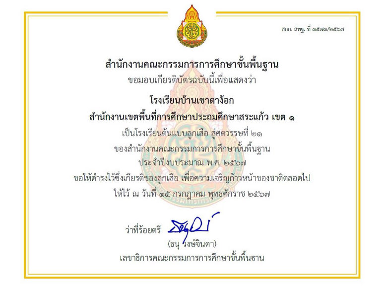 ผลงานที่ภาคภูมิใจ รางวัลผลการปฏิบัติที่เป็นเลิศ Best Of The Best ปี 2566 เหรียญทองการแข่งขันศิลปหัตถกรมมนักเรียนครั้งที่ 71 ปีการศึกษา 2566 ประกาศโรงเรียนบ้านเขาตาง้อกได้รับรางวัลสถานศึกษาสีขาว ปลอดยาเสพติดและอบายมุข ระดับเพชร