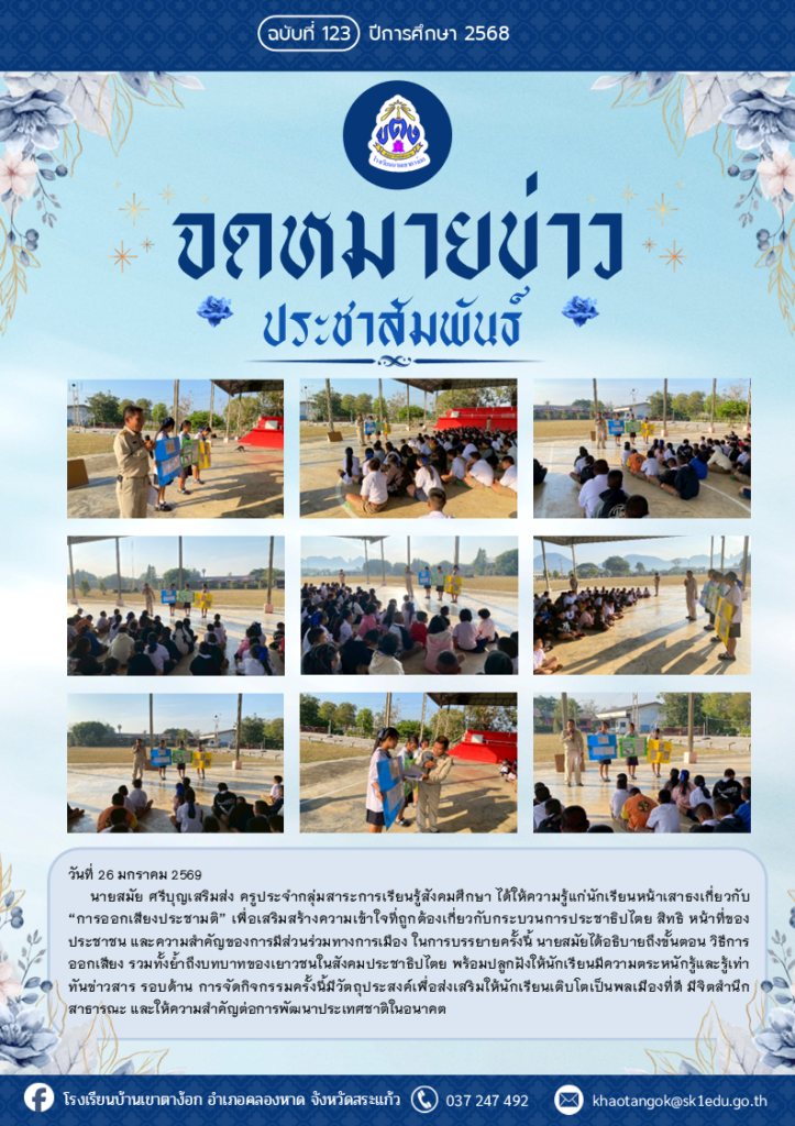 วารสารประชาสัมพันธ์โรงเรียนปีการศึกษา 2568 – วารสารปีการศึกษา 2565 – วารสารปีการศึกษา 2566 – วารสารปีการศึกษา 2567 เดือน พฤษภาคม เดือน มิถุนายน เดือน กรกฎาคม เดือน สิงหาคม เดือน กันยายน เดือน ตุลาคม เดือน พฤศจิกายน เดือนธันวาคม เดือนมกราคม เดือน กุมภาพันธ์